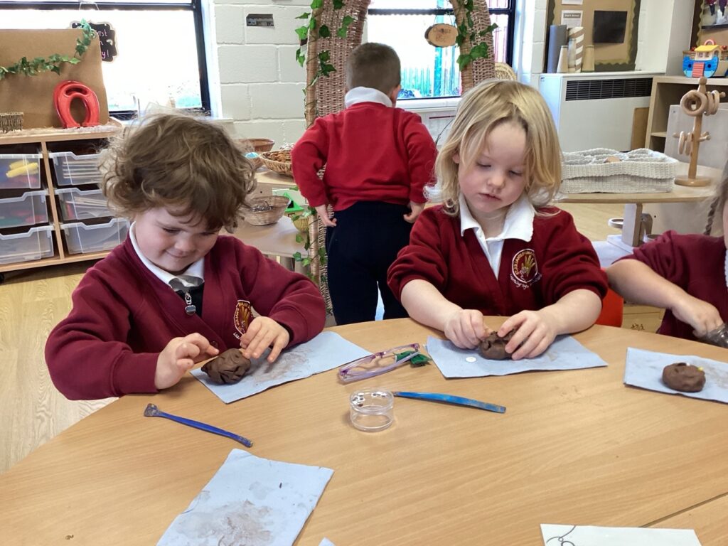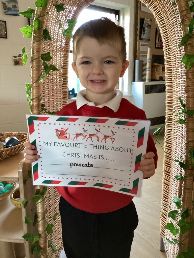 The children have become increasingly independent, especially during snack time, confidently choosing their food, helping themselves and tidying up afterwards. They have worked so hard to recognise our sound of the week and have shown fantastic enthusiasm in all our phonics activities. We also enjoyed a lovely Stay and Play session where families joined us in nursery to take part in the activities we do every day and discover ideas they can use at home too. Our theme at the start of this term was all about hedgehogs, and the children loved learning about them —making hedgehogs out of clay, drawing them on Seesaw, and even creating a hedgehog house as our end-of-theme project. We were delighted to welcome visitors from the Gwent Wildlife Trust, who shared lots of fascinating information during their hedgehog talk. As December arrived, the excitement grew with a visit from Santa and aspecial Elf Day, where two elves from the North Pole visited us for a day of festive fun. We spent time making Christmas cards, decorations, reindeer food, Christmas cookies and 2026 calendars, filling the nursery with creativity and Christmas cheer. To finish the term in the most magical way, the children performed a fantastic Christmas concert, ‘Nursery Rhyme Nativity’, sharing songs, actions and plenty of confidence. It has been a busy term, and we are so proud of everything the children have achieved.