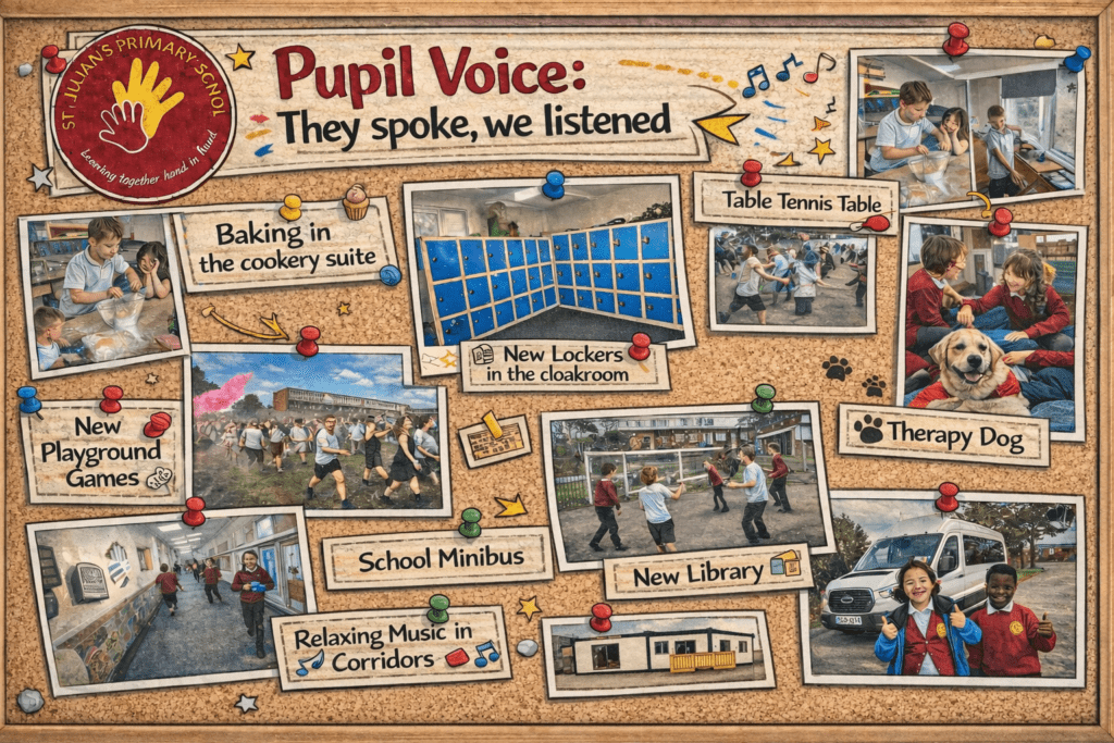 At St Julian’s, we work hard to make sure children have a voice – and, just as importantly, that their voice is listened to. Through our Pupil Parliament departments and Infant Pupil Voice groups, children regularly share ideas that we’ve been able to turn into reality. These are just some of the ways their ideas have helped shape and improve our school.