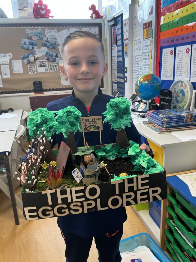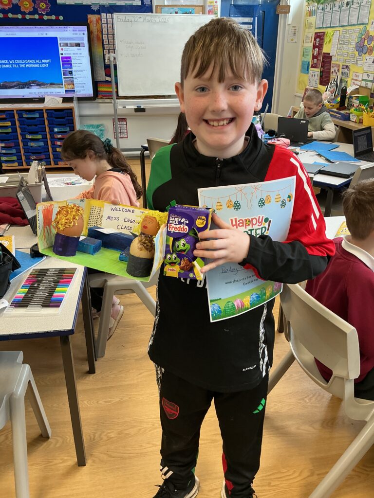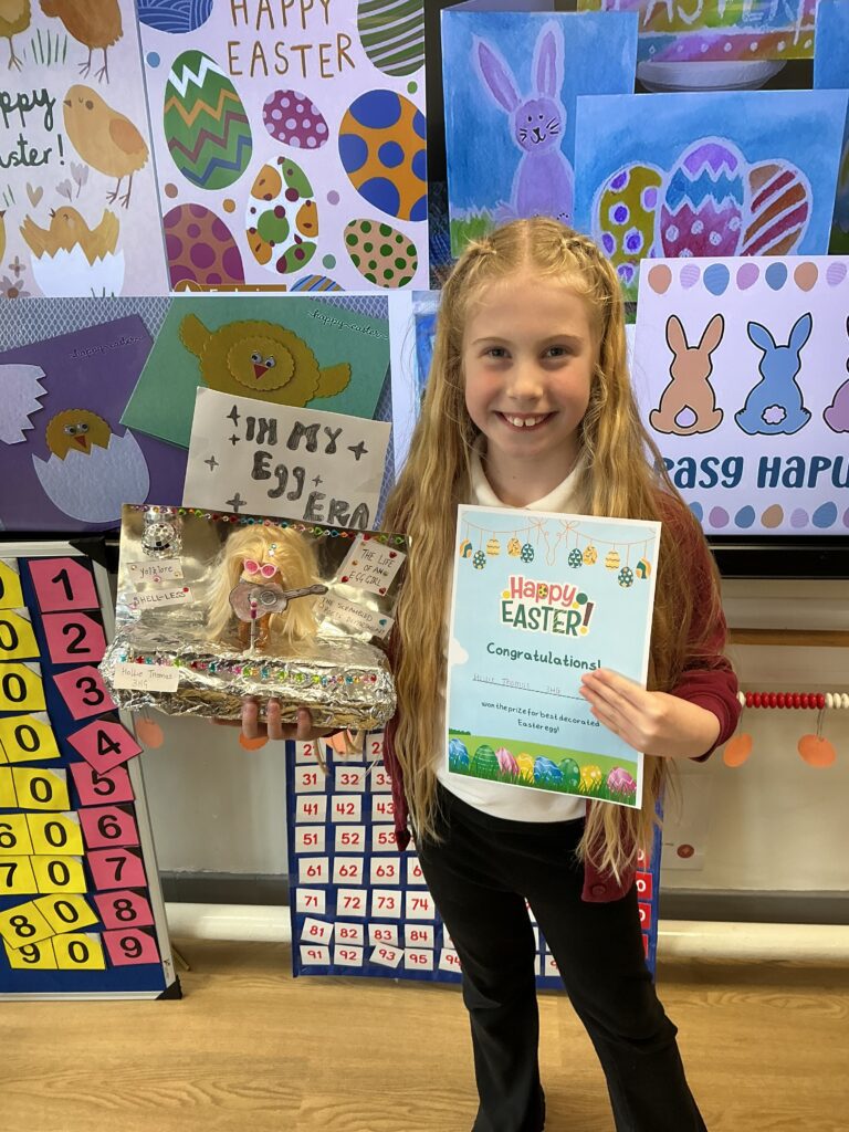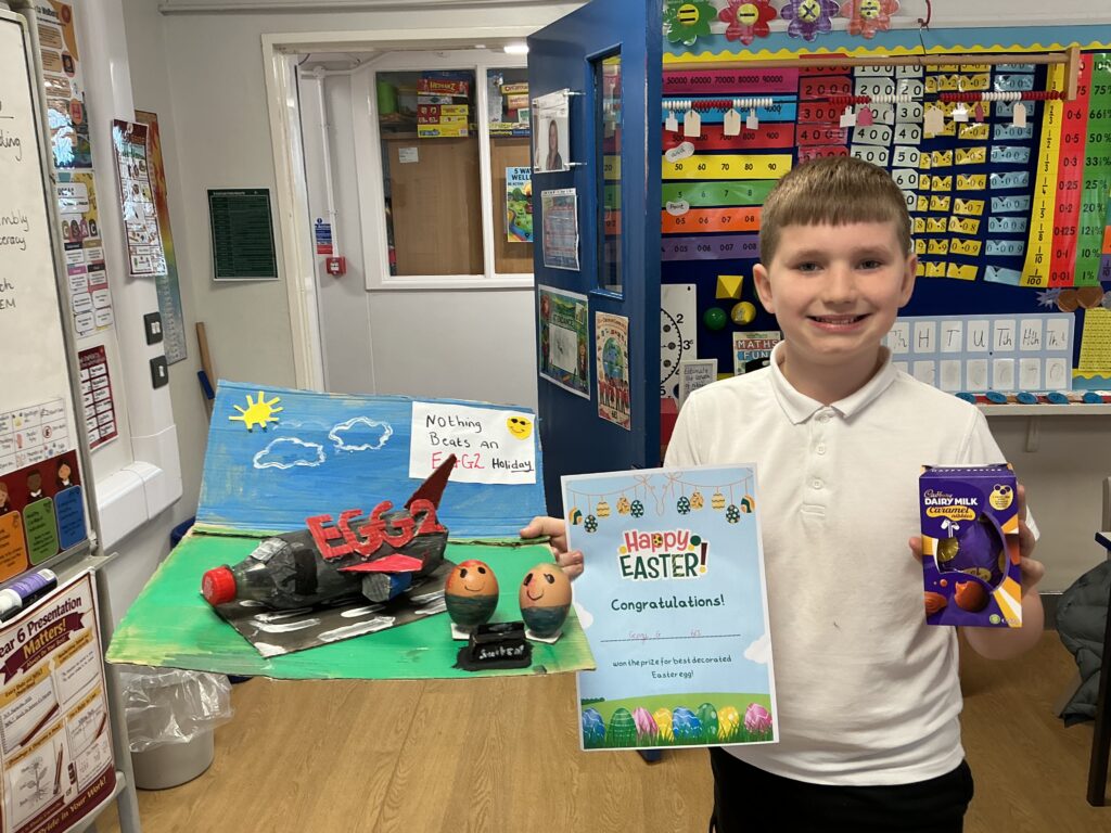 We had two great Easter Assemblies on the last day of term. The junior assembly was led by Revered Catherine Lewis from St Julian’s Methodist Church. She brought lots of Easter related foods – Easter Eggs, Hot Cross Buns, Simnel Cake – and talked about the symbolism of each and the story of Easter. We announced the winners of our Egg Decoration Competition and presented the winners from each class with a chocolate Egg.