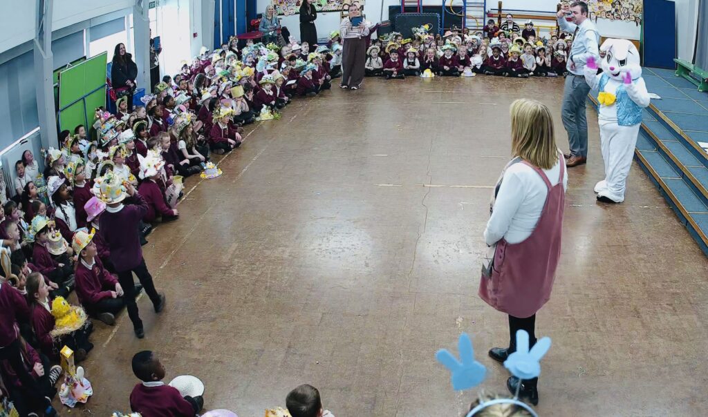 In the Infant assembly, each year group took part in an Easter Bonnet parade, showing off their decorated Easter bonnets. The Easter bunny also made an appearance.
