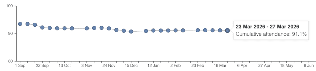 Good attendance at school is vital for children’s learning, confidence and wellbeing, as every day in school builds knowledge, friendships and routines that support success. Thank you to all parents and carers for your continued support in ensuring children attend regularly and on time.