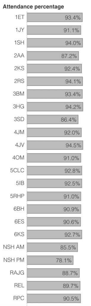 This graph shows our whole school attendance across the year so far.