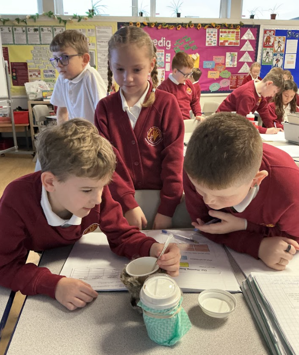We carried out an exciting insulation experiment to investigate which materials were best at keeping heat in — just like explorers would need to know when surviving in freezing conditions! We tested different materials carefully and recorded our results like real scientists.