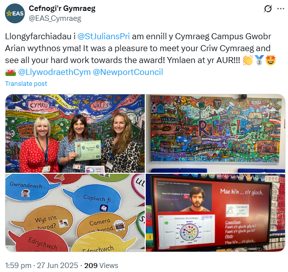 We finally had the visit from the EAS ladies! They spent a few hours being bamboozled by our Cymraeg brilliance before declaring us a CYMRAEG CAMPUS ARIAN SCHOOL 🥳 All Criw Cymraeg’s hard work paid off, and I’m so proud of their dedication and commitment to Welsh in our school. Da iawn, Criw Cymraeg and diolch for being so awesome!