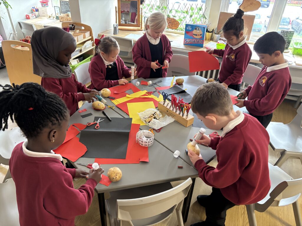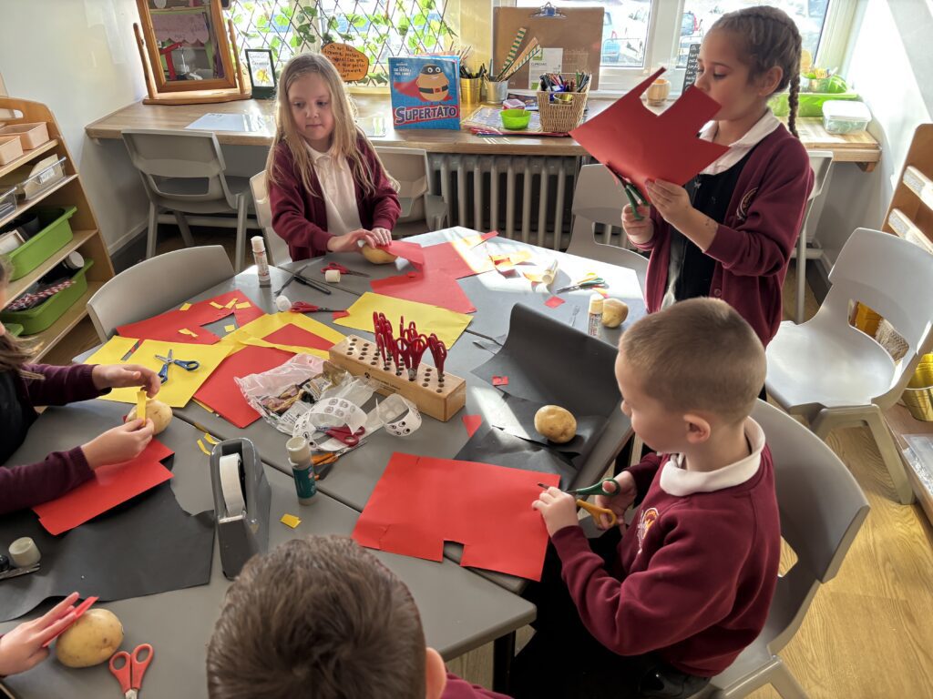Year 1 have had a very busy and exciting time at school! We have been learning about Evil Pea and Supertato, and we loved reading the stories together. Evil Pea was very naughty and even broke into our classroom, where he trapped the vegetables! Luckily, the brave Supertato came to the rescue and saved the day. We had lots of fun acting out the story, drawing pictures, and writing about what happened.