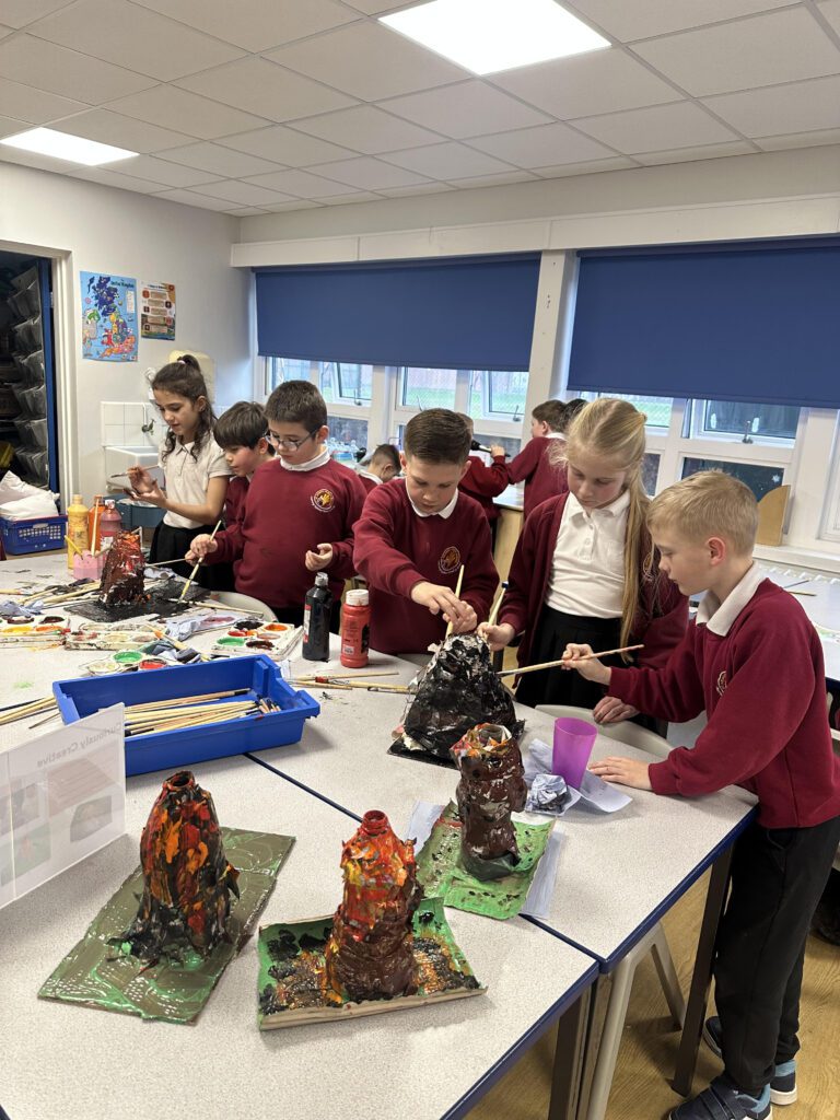 To end our theme, Extreme Earth, the children have been learning all about volcanoes – where they are located, the cross-section of a volcano, and how they erupt. In STEM, we explored different vinegars and bicarbonate of soda to test which combination would create the best eruption. Then, we got creative and made our own volcano models, painted them, and finally erupted them using the best vinegar. It was so much fun and very exciting to see science in action!