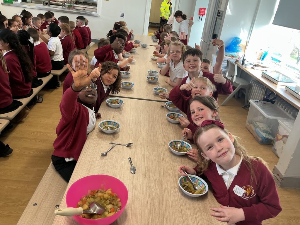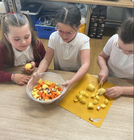 We also stepped back in time by using the cooking suite, where we made medieval pottage. The children practised weighing, peeling and chopping ingredients accurately, and thoroughly enjoyed tasting their creations.